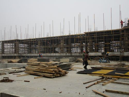 萬象城市綜合體水岸香堤1#樓主體二層模板、鋼筋施工中