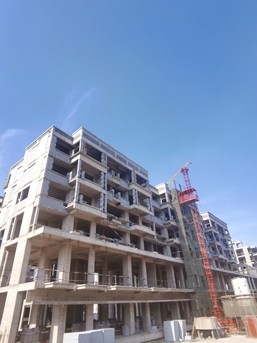 7#樓主體驗(yàn)收完成,內(nèi)墻粉刷開(kāi)始施工。