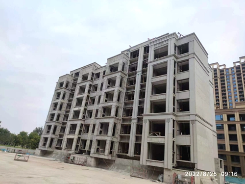 7#樓打地坪完成,屋面防水完成,外墻保溫施工。