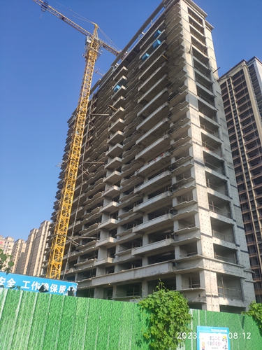 1、1#樓主體已封頂,內(nèi)粉已完成,真石漆完成40%。