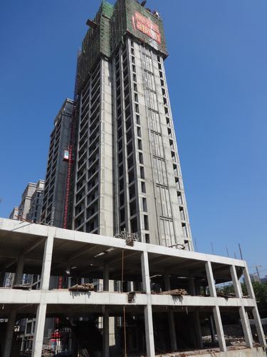 2、萬象藍(lán)天2#樓屋面層造型梁板鋼筋綁扎、模板安裝,內(nèi)墻粉刷。