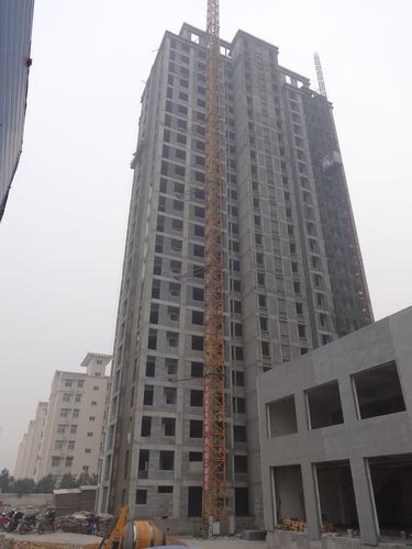 2、萬象藍(lán)天2#樓外墻真石漆,內(nèi)墻罩白,水電安裝,電梯安裝。