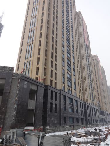 2、萬象藍(lán)天2#樓已完成竣工預(yù)驗收,商鋪石材施工。