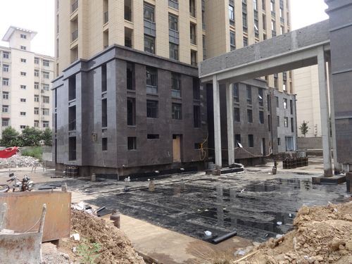 1、萬象藍天3#樓周邊清理,3#樓車庫頂板粘貼防水卷材。