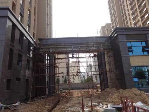 1、萬象藍天1#樓南側、商鋪東側石材鋪裝,大門石材施工。