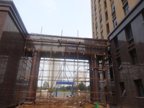 1、萬象藍天北側(cè)圍墻欄桿焊接。北側(cè)車位鋪裝。東大門石材施工。倒運種植土。