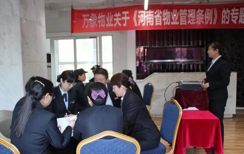 隨著新修訂《河南省物業(yè)管理條例》的出臺,萬象物業(yè)管理人員積極參與省、市的《條例》宣傳、貫徹、學習。并于2018331日,組織各項目員工針對新《條例》的內(nèi)容以分組的形式進行培訓,進一步提升管理人員依法管理的能力。