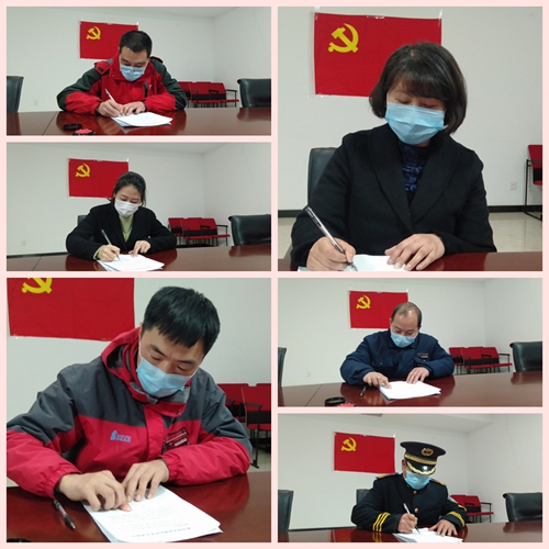 在全國各地打響疫情防控狙擊站的同時(shí),萬象物業(yè)在政府的領(lǐng)導(dǎo)和號召下,在區(qū)政府的幫助和支持下,迅速組織黨員成立了萬象物業(yè)“黨員先鋒隊(duì)”,充分發(fā)揮黨組織戰(zhàn)斗堡壘及黨員先鋒模范帶頭作用。在動(dòng)員會(huì)上,黨員同志表達(dá)了作為一名黨員,應(yīng)該積極配合國家、配合公司打贏這場防控狙擊戰(zhàn)的心情,并主動(dòng)要求簽訂《防控疫情請戰(zhàn)書》。一個(gè)個(gè)簽名,一個(gè)個(gè)紅的手印無不彰顯他們抗擊疫情的決心和勇氣,誓與疫情抗戰(zhàn)到底!