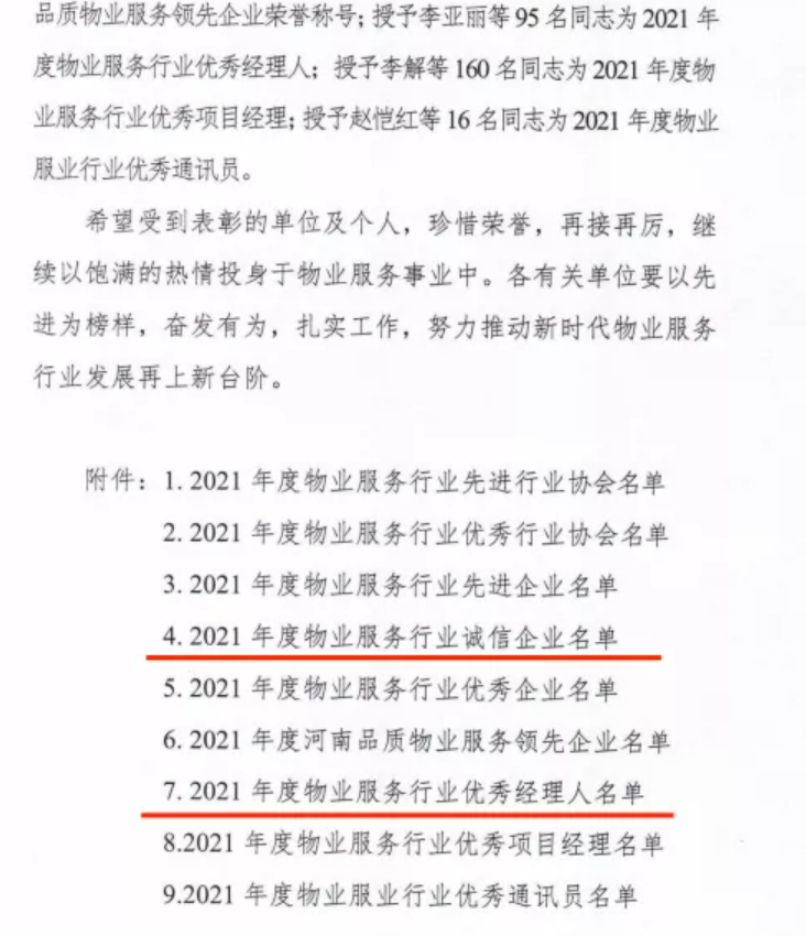 榮獲“河南省物業(yè)服務(wù)行業(yè)優(yōu)秀經(jīng)理人 ”