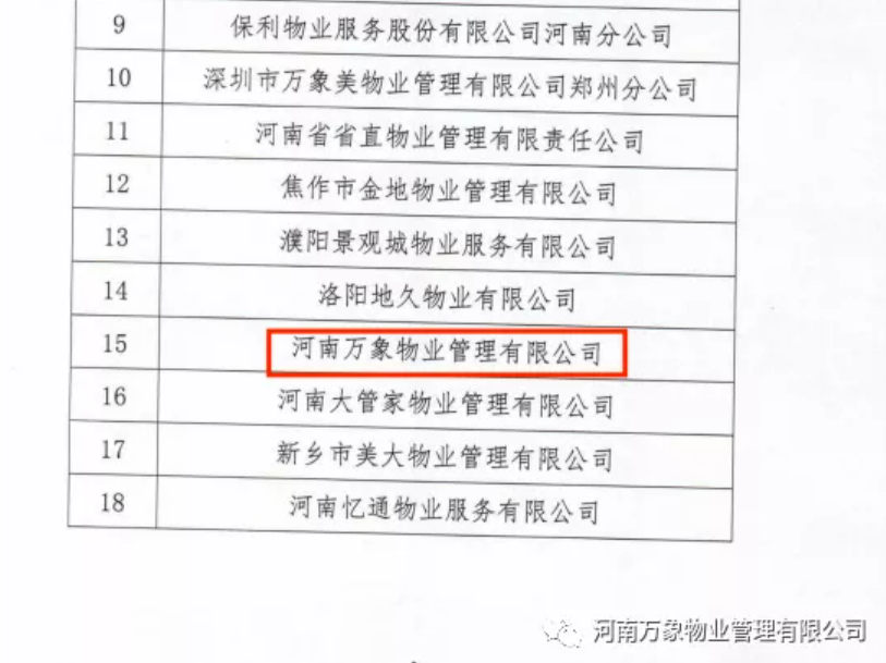 萬象物業(yè)在河南省物業(yè)管理協(xié)會