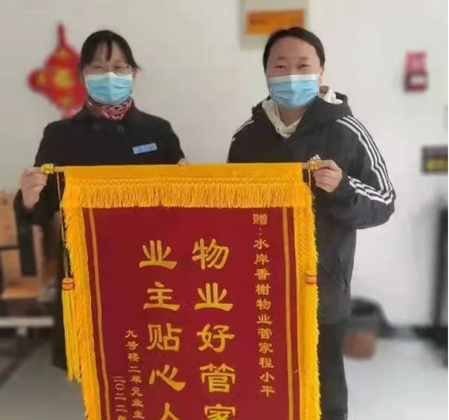 2022年1月受禹州市疫情影響,水岸香榭9號樓的一戶業(yè)主被隔離在家中。為了保障業(yè)主隔離期間的生活保障,客服管家程小平每天為業(yè)主購買及上門配送生活物資。疫情管控期間藥品購買比較困難,程小平為了及時購買業(yè)主需要的藥品,在寒冷的冬天,騎著電動車咨詢多家藥店,終于成功買到。她這種誠心誠意為業(yè)主服務(wù)的決心,收到了業(yè)主的表揚和認可。