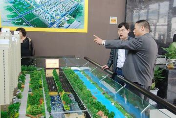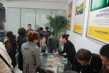 干凈整潔的場地中間一座新現(xiàn)代風格的鋼架結構矗立在那里,室內(nèi)充滿皇室風格的接待椅,結硬朗的售房部帶來一絲溫婉。早上剛一開門,得到消息的客戶們就蜂涌而入,有中秋和國慶房展會上的客戶,有萬象新天和萬象時代廣場的老業(yè)主,還有社會各界得到消息的客戶們,200余平的售房部擠滿了咨詢的客戶們。公司董事長王福增、總經(jīng)理蔡會卿也來到現(xiàn)場指導工作。業(yè)務員們忙的連喝水的空都沒有了,短短一天時間接待客戶140余組。