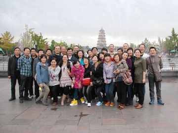 公司員工在大雁塔前合影留念