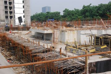 8、6#樓北側(cè)車庫(kù)筏板鋼筋綁扎、模板安裝。