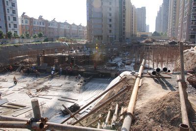 3、8#樓1層梁板鋼筋綁扎,模板安裝(規(guī)劃原因停工)。