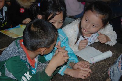 “愛心小天使”們與當(dāng)?shù)貙W(xué)生認(rèn)真交流學(xué)習(xí)