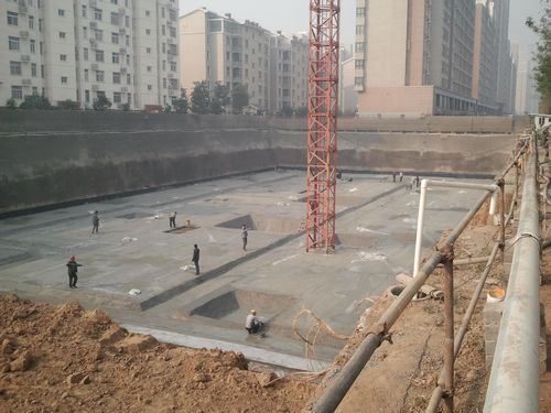 5、藍(lán)天1#樓防水保護(hù)層混凝土澆筑完成,放筏板線。
