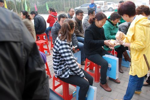 工作人員為提早到場的客戶發(fā)放早餐