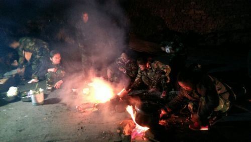 在“破冰”課上,大家組成了尖刀一連、獵鷹二連、猛虎四連、英雄五連、鋼七連、雪狼八連,推選出了連長,在莊嚴(yán)的開營儀式結(jié)束后,隊員背上自己的行囊開始了真正的“士兵突擊”。整個團隊通過努力,以連為單位,向山上進發(fā),在天黑以前,順利到達(dá)露營地。經(jīng)過分工,大家開始安營扎寨、埋鍋造飯。