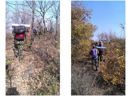第二天早上6點鐘,刺耳的哨音劃破了寂靜的黎明,我們背上更重的行囊和物料奔赴更遠(yuǎn)的目的地。在下午3點鐘,通過大家的共同努力,我們一共翻越了三個山頭,行程近三十公里。