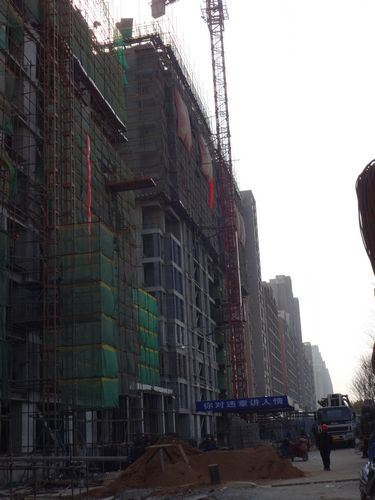 3、萬象藍(lán)天1#樓15層鋼筋綁扎,腳手架搭設(shè)。