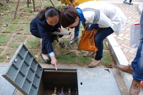 工作人員帶領(lǐng)業(yè)主查驗(yàn)水表讀數(shù)