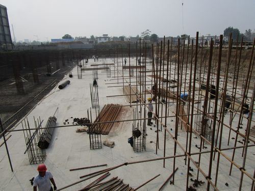萬象城市綜合體水岸香堤1#樓1-16軸~12軸地下室模板安裝及鋼筋綁扎安裝