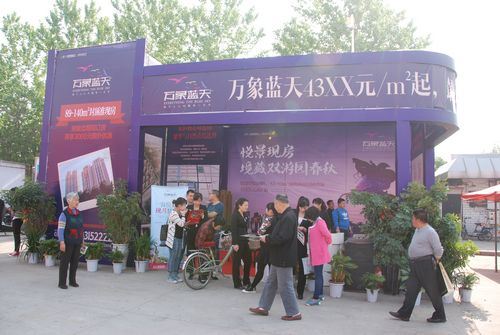 上午9點(diǎn)30分房展會(huì)剛剛開(kāi)幕,萬(wàn)象地產(chǎn)精心布置的展廳就迎來(lái)了一個(gè)個(gè)前來(lái)積極看房的客戶。 我公司本次主推的項(xiàng)目為——“萬(wàn)象藍(lán)天” ,該項(xiàng)目的創(chuàng)意的魔變空間使二室變?nèi),吸引了大批年輕人的關(guān)注,雙河雙游園的優(yōu)越位置也是該項(xiàng)目的一大亮點(diǎn)。