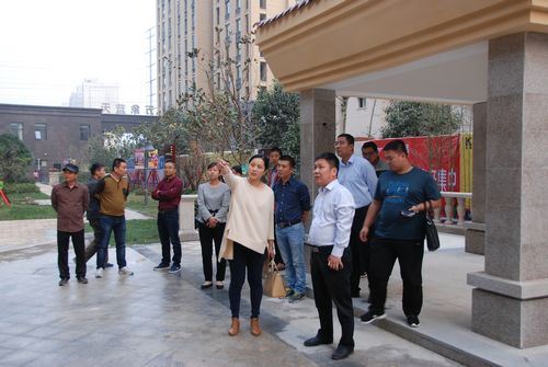 公司總經(jīng)理韓志軍(左二)一行視察萬象藍天交房前準備工作