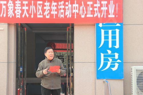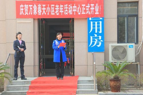 2016年3月19日萬(wàn)象春天小區(qū)老年活動(dòng)中心正式成立。在這萬(wàn)物復(fù)蘇,春意盎然的季節(jié)里,萬(wàn)象春天小區(qū)隆重舉行小區(qū)老年活動(dòng)中心成立慶典儀式。希望通過(guò)開(kāi)展老年活動(dòng)來(lái)豐富老年人的業(yè)余文化生活,使老年人老有所依、老有所學(xué)、老有所為、老有所樂(lè),樹(shù)立敬老、愛(ài)老、助老的傳統(tǒng)美德,從而促進(jìn)萬(wàn)象春天小區(qū)和諧文明的建設(shè)。