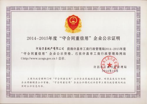 作為知名房地產(chǎn)企業(yè)之一,萬象地產(chǎn)在多年項目開發(fā)中,始終把“守合同重信用”當做企業(yè)發(fā)展的基石,公司是連續(xù)多年獲得“守合同重信用企業(yè)”的榮譽稱號,這些是來自政府部門和市場行業(yè)的認可和鼓勵,但這份榮譽也將鞭策著我們不斷前行,將誠實守信、合法經(jīng)營灌輸?shù)狡髽I(yè)文化中,持續(xù)做好企業(yè)誠信建設(shè),“守合同重信用”是保持自身競爭優(yōu)勢的良好途徑,也是萬象地產(chǎn)發(fā)展的動力之一。