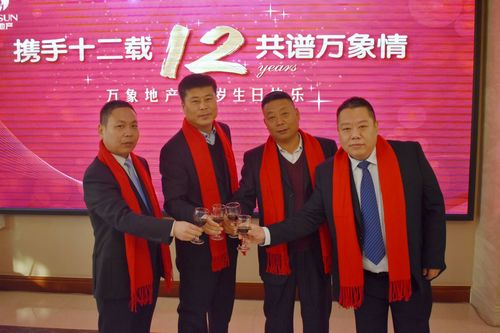 12月1日,是萬(wàn)象地產(chǎn)成立十二周年的大喜日子,今天,我們相聚在一起,為萬(wàn)象“十二歲”送上衷心的祝福!公司董事長(zhǎng)王福增、副董事長(zhǎng)金呔臣、總裁王福聚和總經(jīng)理韓志軍參加了此盛會(huì)!