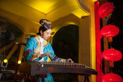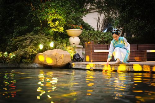 外場(chǎng)游園活動(dòng)中,清宮美女相陪,古箏琵琶優(yōu)雅閑適,一盞盞河燈在水流中綻放點(diǎn)點(diǎn)星光,現(xiàn)場(chǎng)美的不可方物。