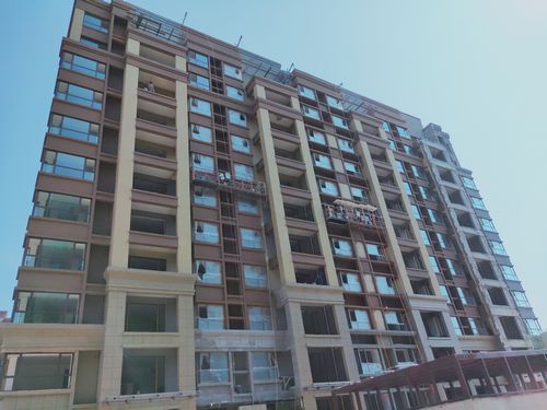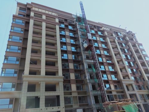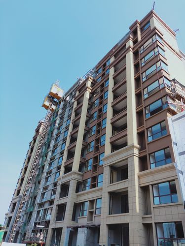10、11#樓8#樓外墻真石漆完成,頂棚罩白完成,電梯安裝完成,百葉安裝。