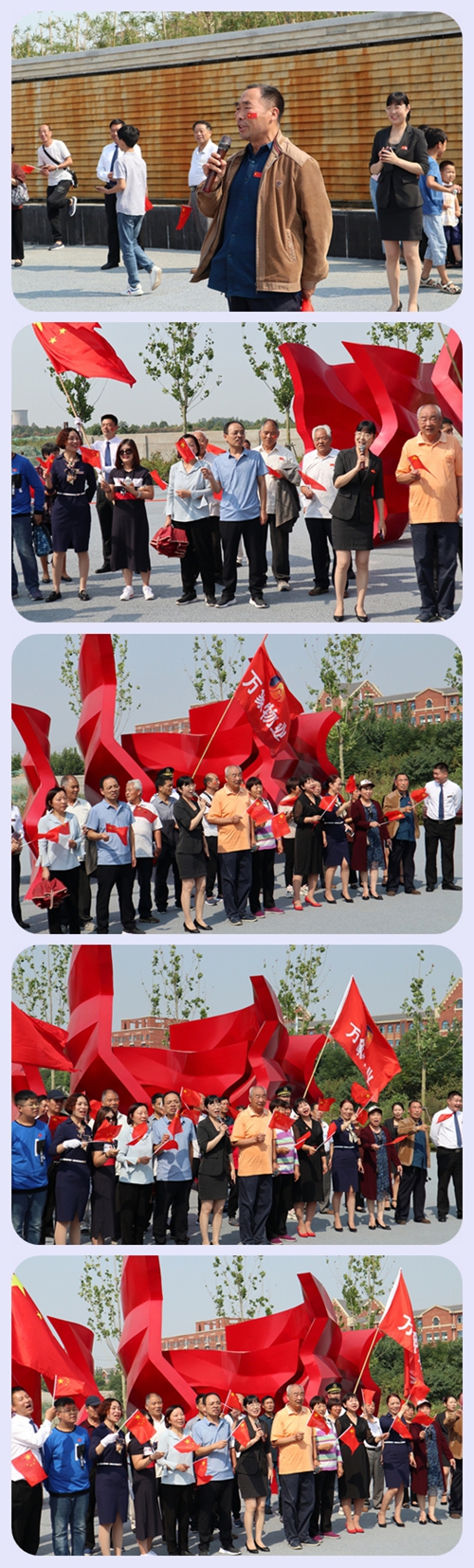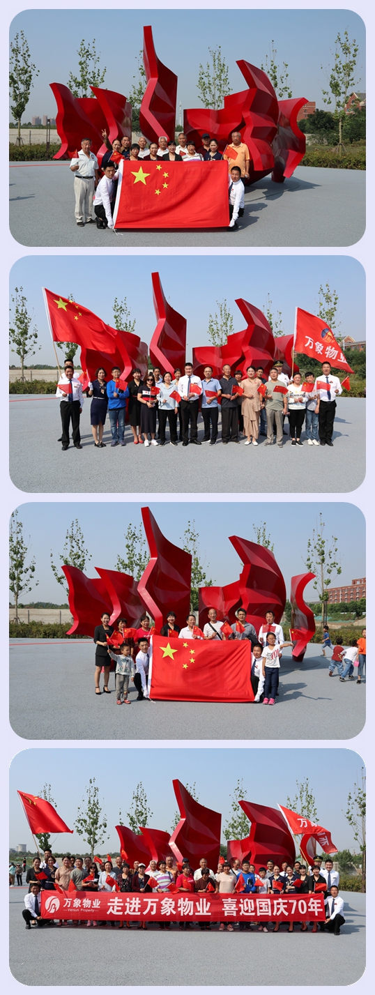 2019年10月1日是中華人民共和國成立70周年的喜慶日子,70年的風雨兼程,中國共產黨帶領我們創(chuàng)造了新的中國,讓我們過上了幸福美滿的生活。值此國慶佳節(jié)來臨之際,9月28日上午,萬象物業(yè)和業(yè)主朋友們一起來到位于天寶路五一路交匯處西北方向霸凌河畔的黨建公園游覽參觀。它主要以“講述黨的故事,傳承紅色精神”為主題,將黨建生活與我們緊密的聯系在一起。在這里,我們共同回顧歷史,感念中國共產黨的發(fā)展歷史,現場生動、形象的各種景觀小品更是喚醒了我們的紅色記憶。