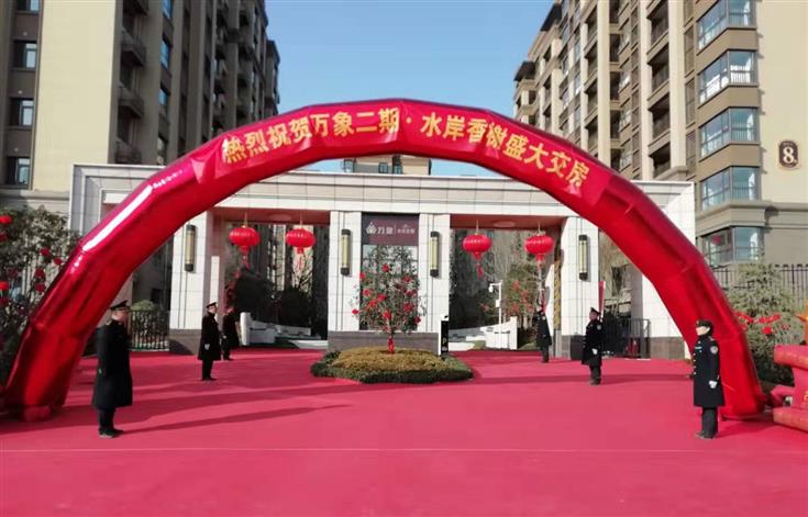 上午八點交房現(xiàn)場喜氣洋洋,一大早工作人員便在各自的崗位上等待業(yè)主的到來,隨處可見的工作人員,一句"恭喜您,歡迎回家"表達著萬象物業(yè)最真摯的問候。
