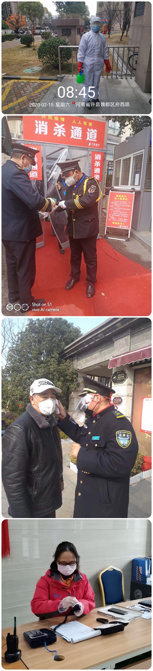 防控疫情狙擊戰(zhàn)在全國各地打響之際,防疫物資嚴重匱乏,一難求。萬象物業(yè)經(jīng)多方調(diào)度,采購口罩、手套、消毒液、防護服、護目鏡等防疫物資,每日向崗上員工發(fā)放一次性醫(yī)用口罩、手套等防護用品,并要求各崗員工在進入園區(qū)工作前必須進行體溫測量和車輛消殺,一切正常后方可進入園區(qū)。全副武裝,安全防范從自身做起,為業(yè)主筑起身體健康和生命安全的防護線。