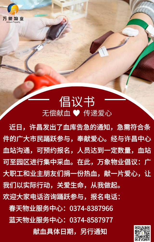 萬象物業(yè)無償獻(xiàn)血倡議書