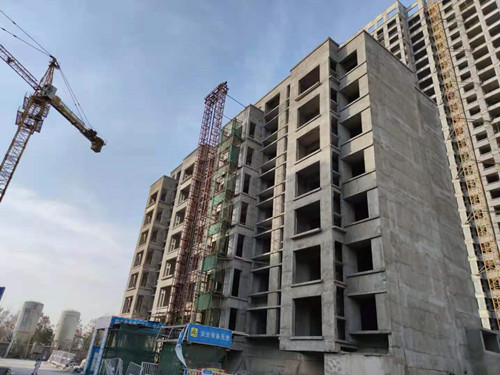 5#主體已封頂二次結(jié)構(gòu)砌筑及內(nèi)外粉完成,外墻保溫完成40%。