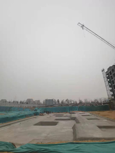9#樓負二層澆筑完成,負一層墻柱筋綁扎中。