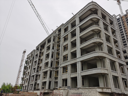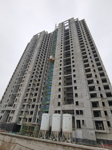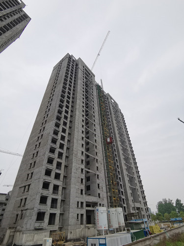 4#樓主體已封頂外墻漆完成70%,地坪完成,窗框安裝完成。