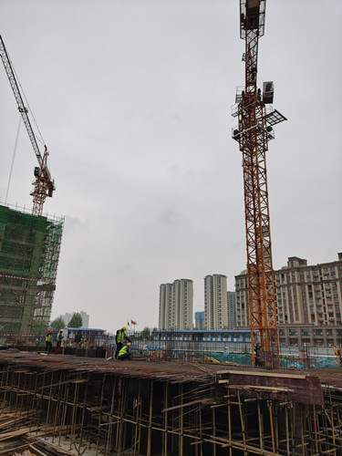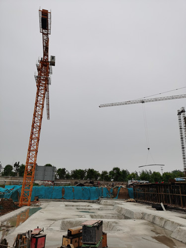 7#樓塔吊安裝完成,準備綁扎筏板鋼筋。