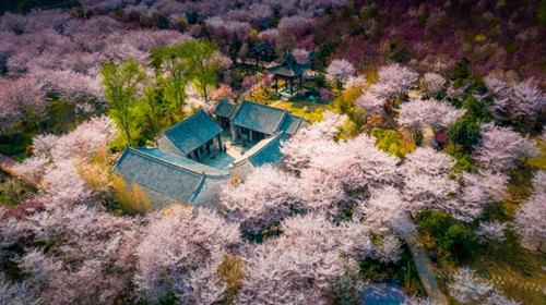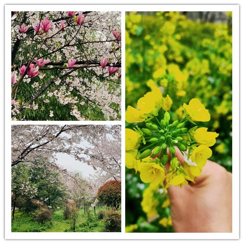 初進園內(nèi)古香古色的園林景觀,古琴悠悠,輕輕繚繞早游客耳邊,讓人有一種夢回大唐的感覺,櫻花、紅玉蘭、白玉蘭、油菜花競相開放,美不勝收。