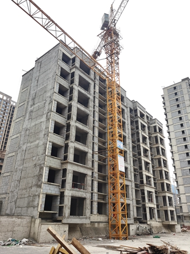 5#樓南側(cè)車(chē)庫(kù)封頂,物業(yè)用房一層搭設(shè)滿堂架,綁扎墻柱鋼筋。