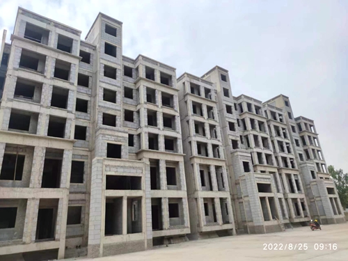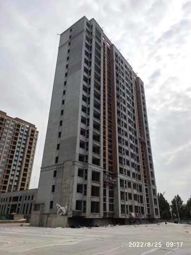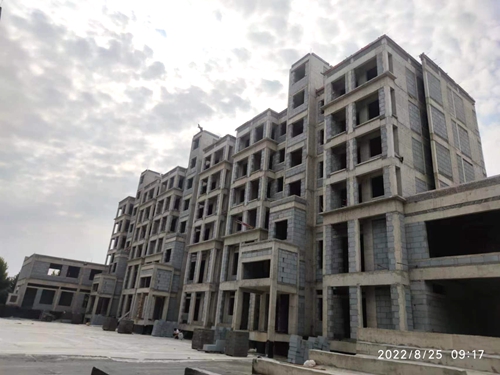 7#樓打地坪完成,屋面防水完成,外墻保溫施工。