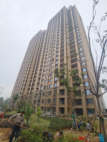 景觀工程:1#2#樓南北兩側(cè)種植苗木,2#5#樓東側(cè)道路澆筑混凝土。