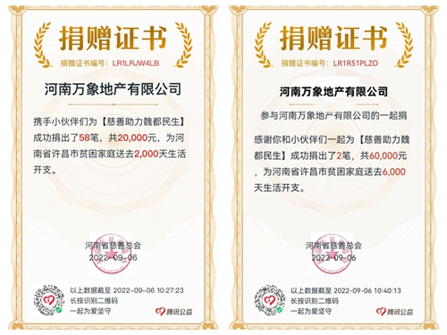 萬象地產(chǎn)從成立之初就把“服務大眾,回饋社會”作為自己的立企之本,十七年來,萬象地產(chǎn)從未停止過慈善的步伐,從2006年首次捐助春蕾女童至今,捐助行動從企業(yè)行為到企業(yè)與員工的共同追求,再到社會的共同參與,愛心的善舉不斷放大,這一切讓我們感到無比的欣慰!