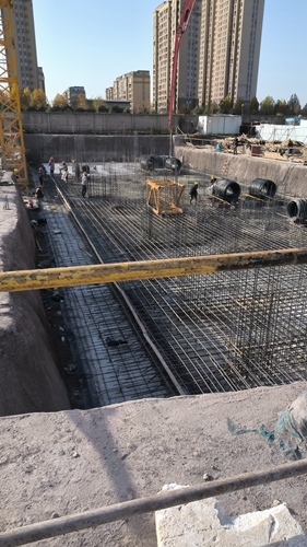 6、7#樓基礎(chǔ)筏板鋼筋綁扎。