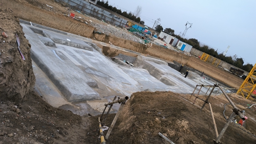 8、9號(hào)樓墊層完成,磚胎膜砌筑粉刷完成。