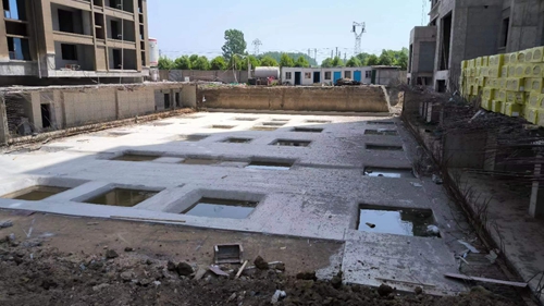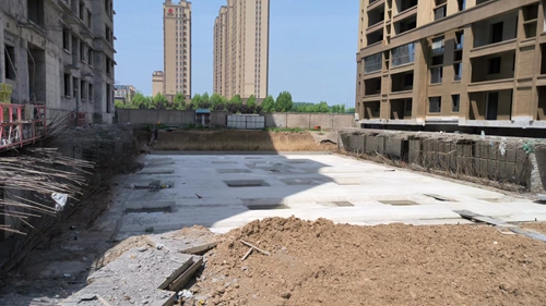 9、1#樓南側(cè)車庫(kù)墊層澆筑完成。